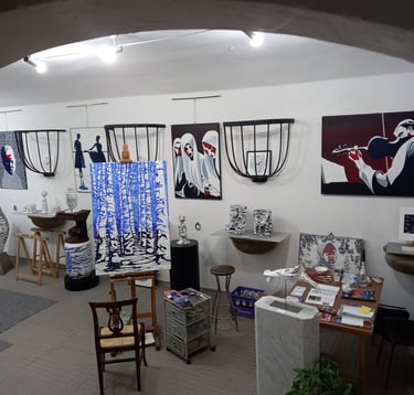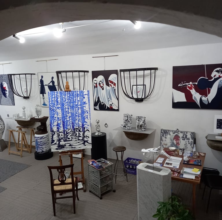 Lux Art Studio by Andrea Bianchini is located at Via dei Coverelli 17/R (formerly Chiasso Perduto) on the ground floor of a former horse stable adjacent to Palazzo Vettori. Inside, you can still see the wrought iron baskets that held hay and the stone grit drinking troughs. This street is home to two 15th-century palaces, Palazzo Machiavelli and Palazzo Coverelli, whose facade is decorated with refined lime graffiti. Here, the artist has an archive of his works and exhibits them. Upon entering his studio, you may catch a glimpse of him at work.